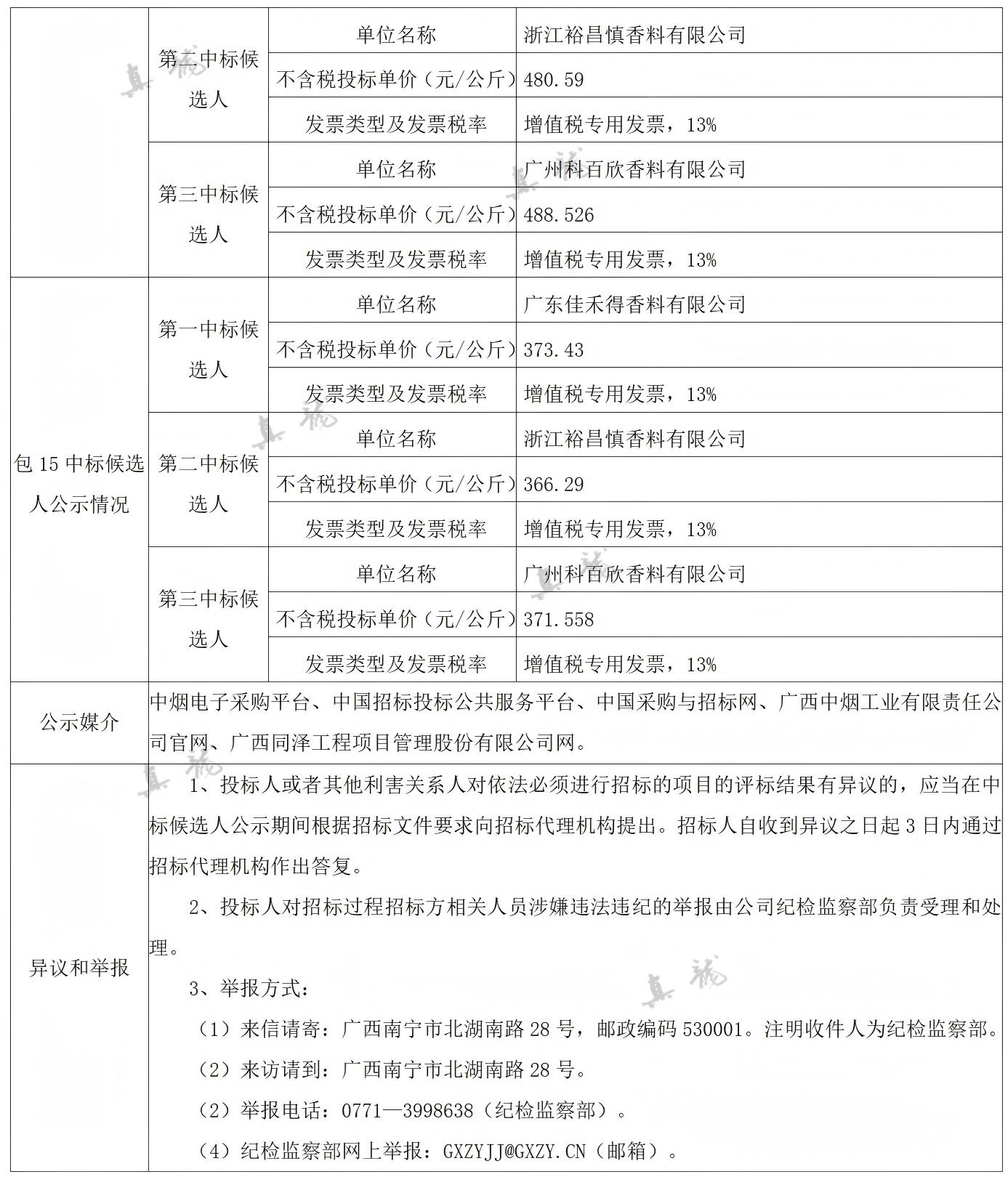 廣西中煙工業(yè)有限責(zé)任公司2026-2028年自主品牌香精香料采購之復(fù)合體采購第一批(項目編號:B202501BA2001767947560)中標(biāo)候選人公示
