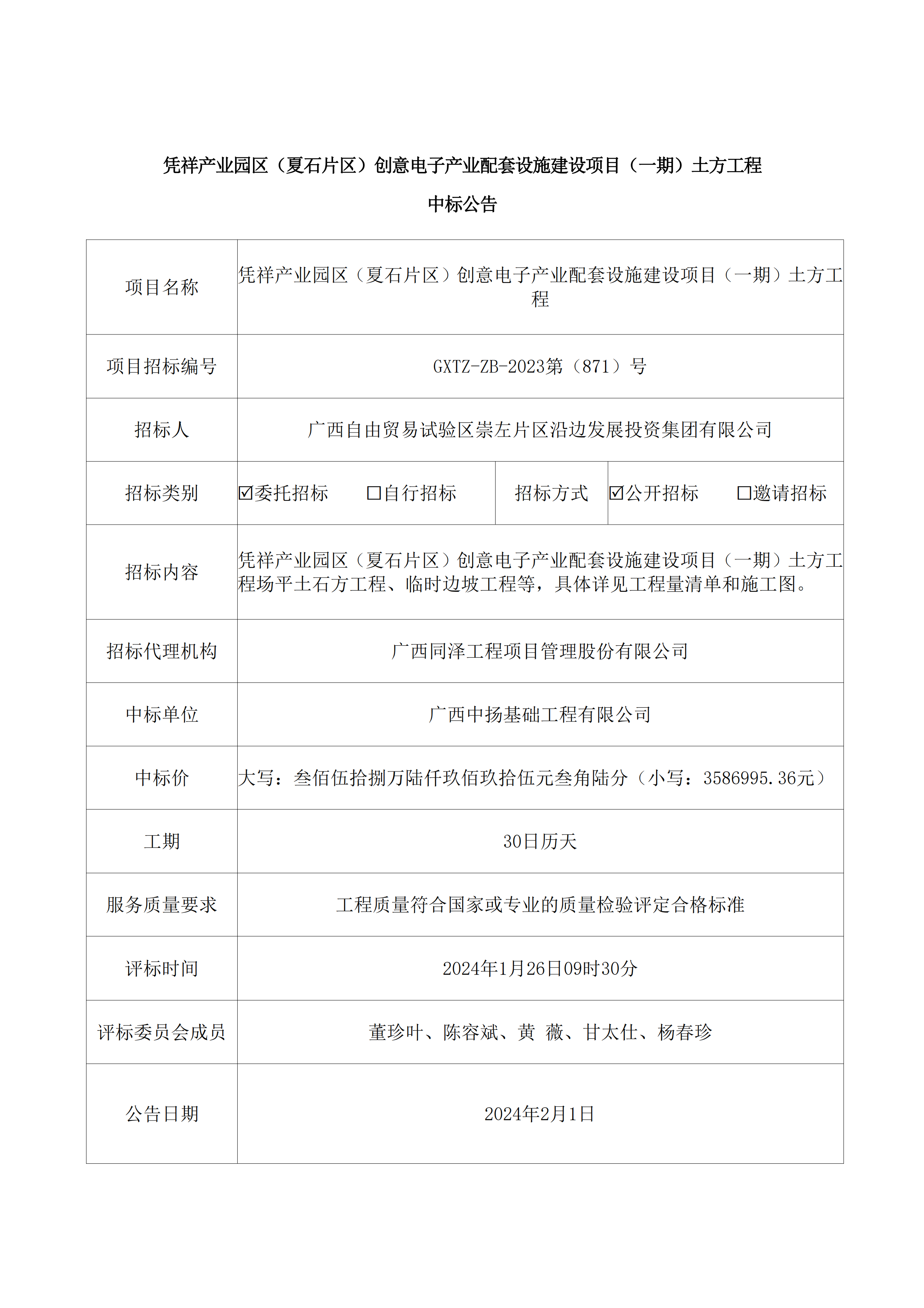 憑祥產(chǎn)業(yè)園區(qū)(夏石片區(qū))創(chuàng)意電子產(chǎn)業(yè)配套設施建設項目(一期)土方工程中標公告