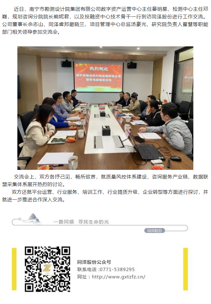 合作交流 | 南寧市勘測設(shè)計院集團(tuán)有限公司到訪同澤股份交流