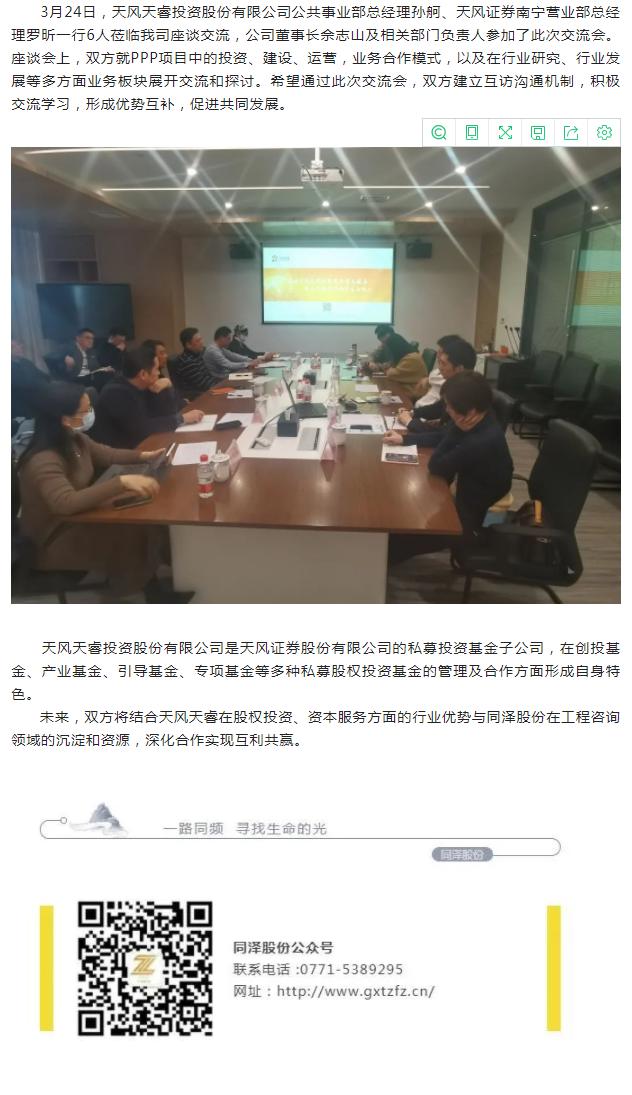 合作交流 | 天風(fēng)天睿投資股份有限公司到訪同澤股份座談交流