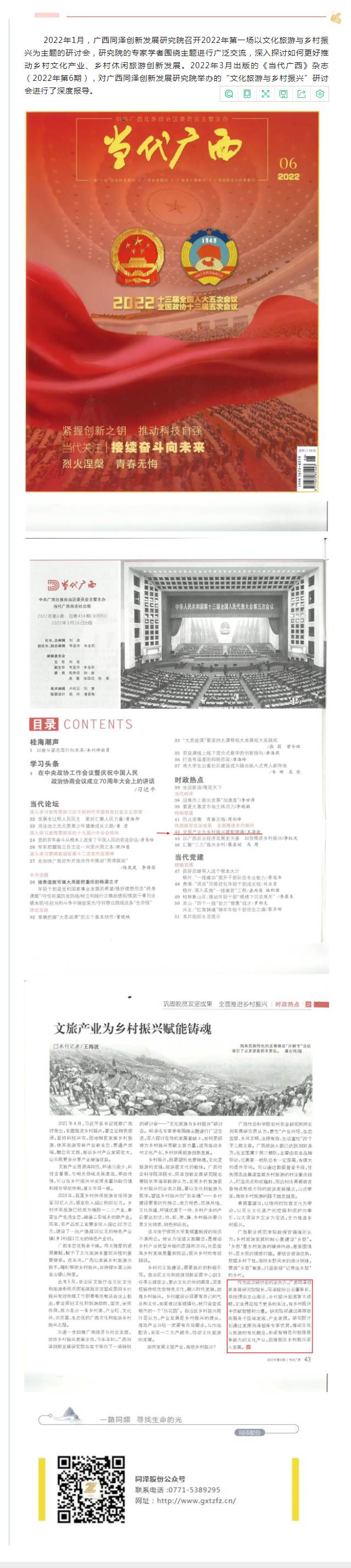 同澤研究院“文化旅游與鄉(xiāng)村振興”研討會獲《當代廣西》雜志報導